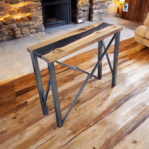 Chaque meuble est unique : un design singulier, une matière vivante, et un piétement métallique sur mesure pour un rendu à la fois solide et raffiné.