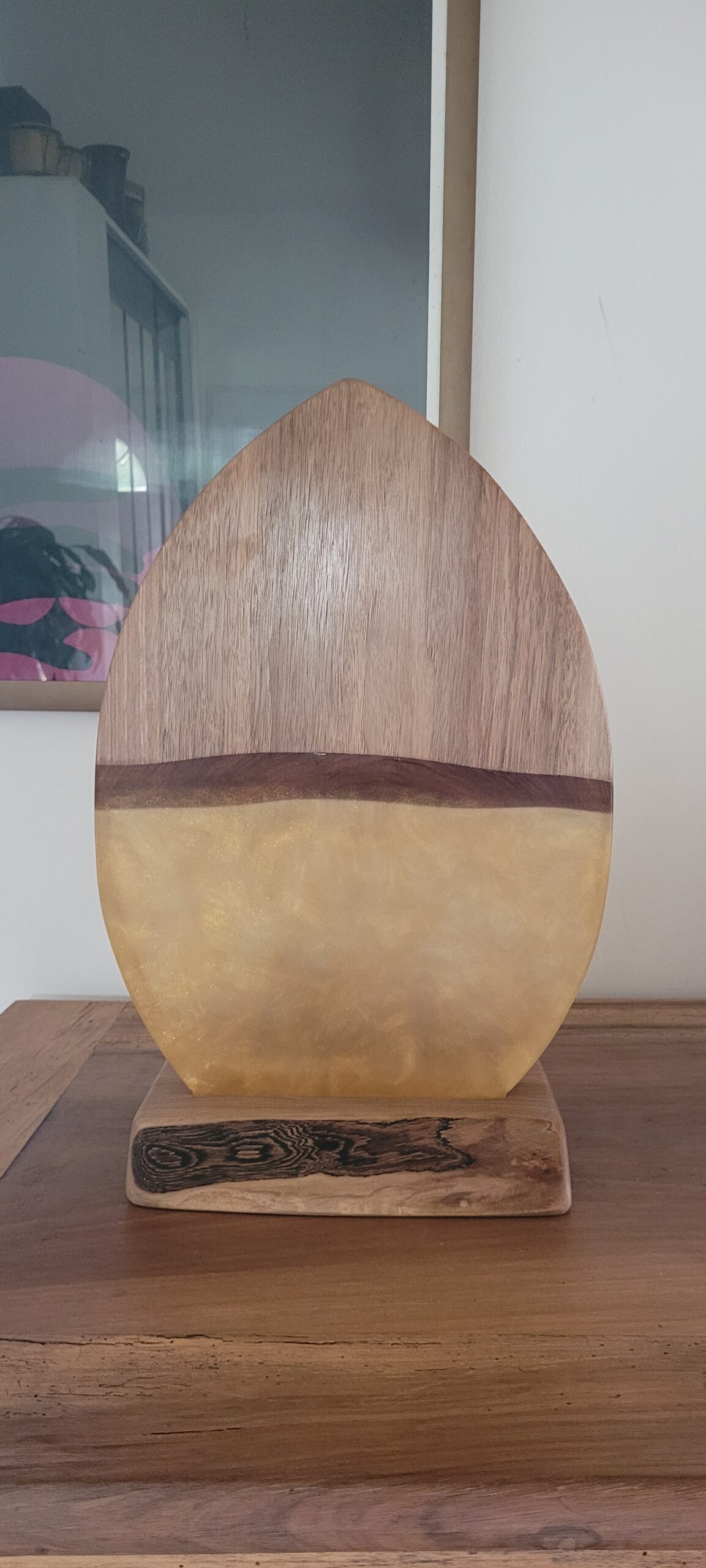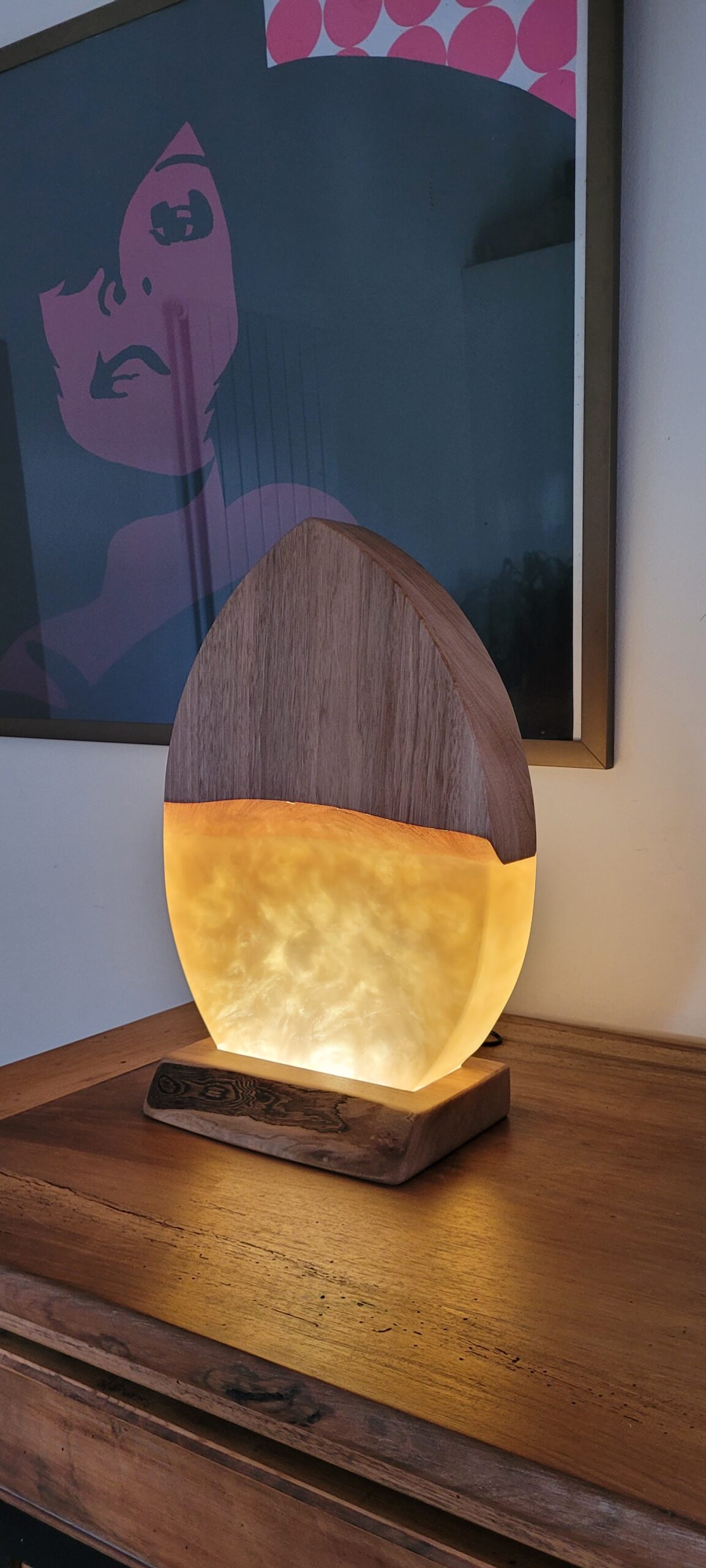 Offrez une touche d’élégance et de modernité à votre intérieur avec cette lampe d’ambiance design N°62 en noyer et résine époxy or, alliant savoir-faire artisanal et technologie LED. Parfaite pour créer une ambiance chaleureuse et raffinée, cette pièce unique sublimera votre salon, chambre ou bureau.
