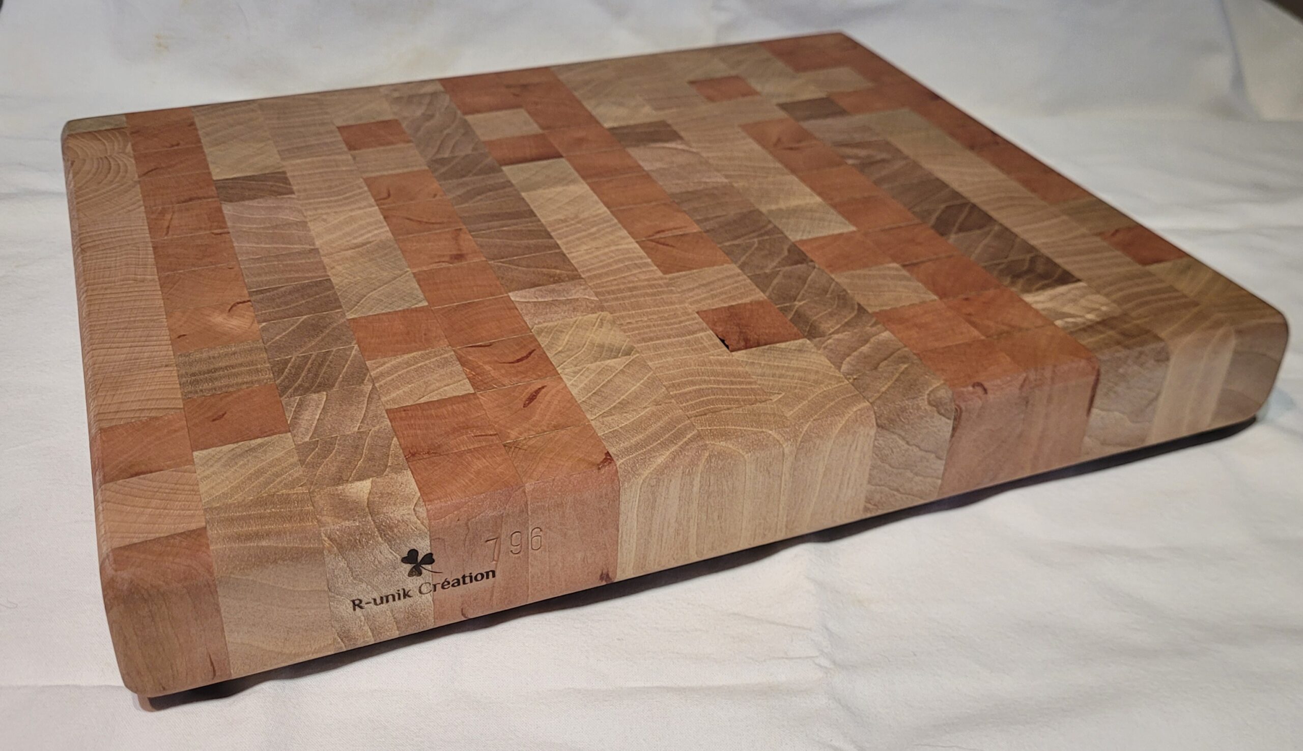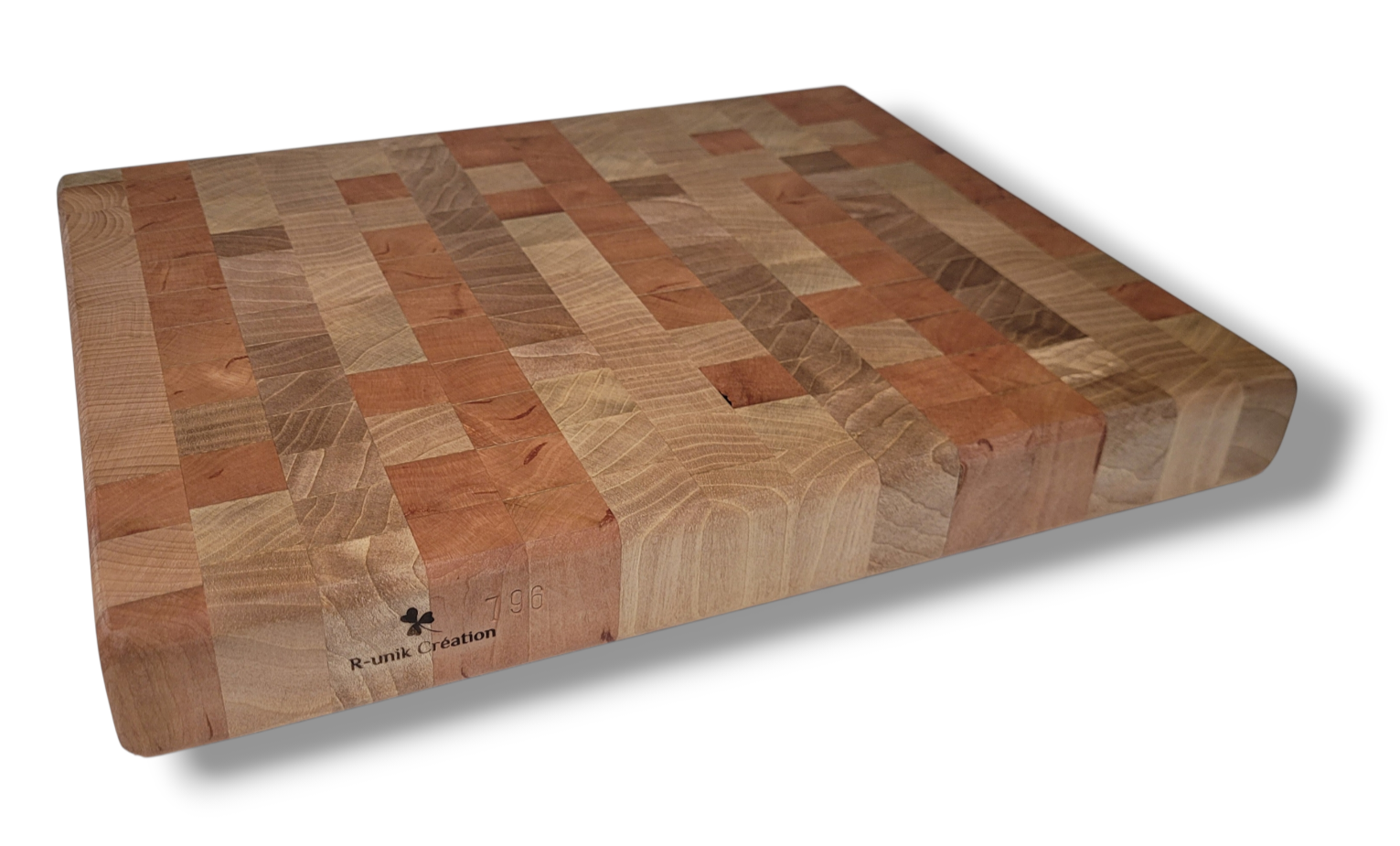 Découvrez notre planche à découper N°796, une pièce unique alliant la douceur du poirier, le caractère du noyer et la finesse d’un placage d’érable. Chaque essence a été choisie pour son esthétique et sa résistance, offrant un objet à la fois pratique, durable et sublime.
